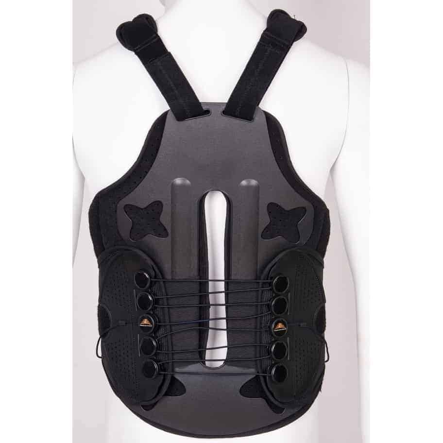 - Πρόσθια υψηλή ζώνη με εσωτερικό πλαστικό στήριγμα με μεταλλική προέκταση Τ ρυθμιζόμενου ύψους που προσφέρει έκταση και υπερέκταση του κορμού.