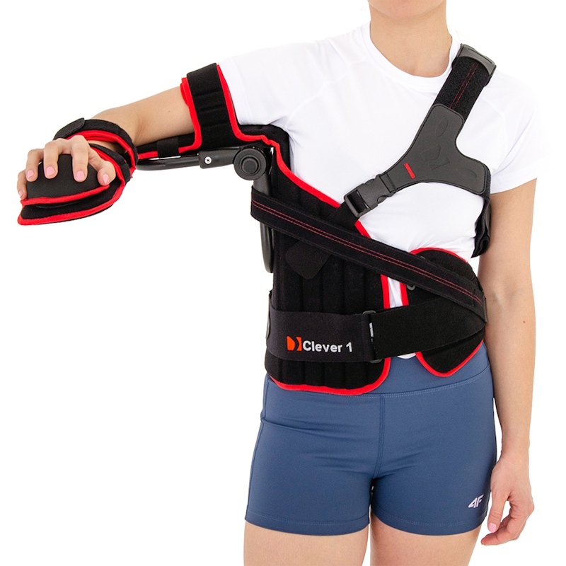 - Αφρώδες αντιστήριγμα ρύθμισης της οριζόντιας προσαγωγής ή απαγωγής του ώμου, όταν αυτή απαιτείται. Εφαρμόζεται με ιμάντες (στις δύο πλευρές του πολυκεντρικού μηχανισμού) μέσω των οποίων επιτυγχάνεται η επιθυμητή θέση της άρθρωσης του ώμου.